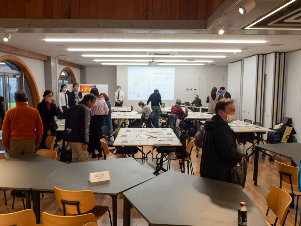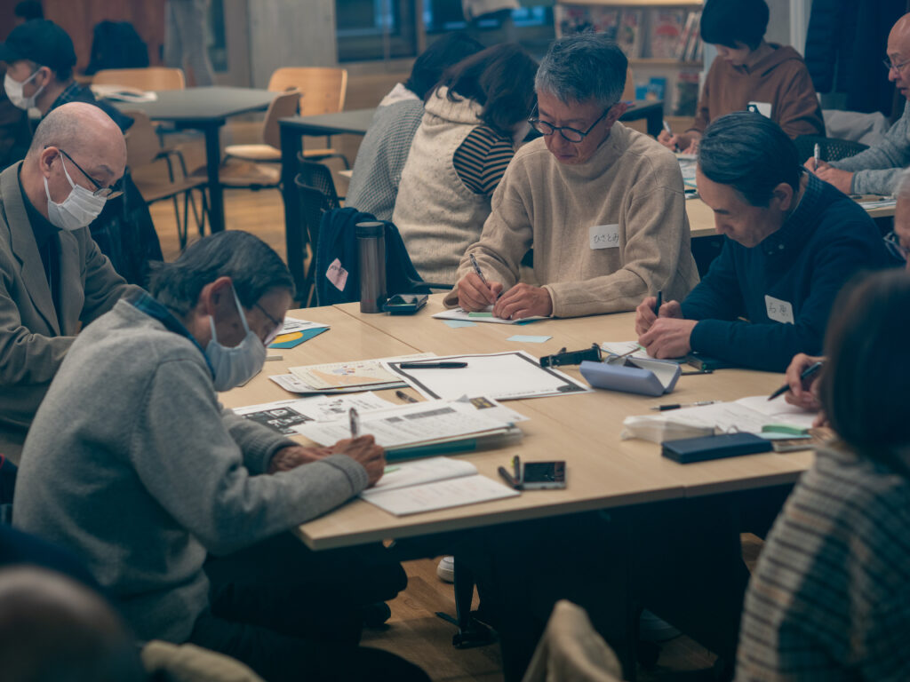 付箋に書かれた参加者の声が、テーブルの上に色とりどりに広がっていく光景は、まさに“市民の声の可視化”。