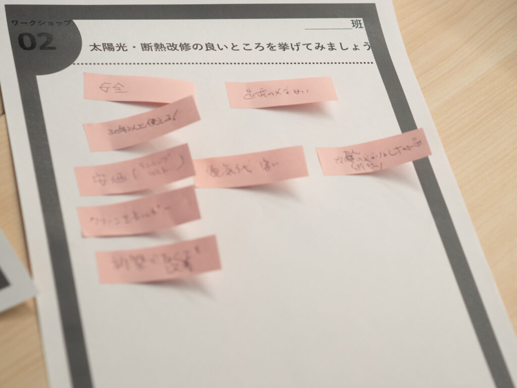 ワークショップ②:太陽光・断熱の“いいところ/気になるところ”
